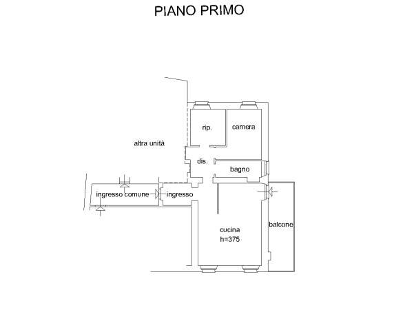 appartamento ad uso civile abitazione, posto al piano primo di un fabbricato condominiale, composto da ingresso, disimpegno, bagno, cucina, una camera, un ripostiglio ed un balcone, superficie commerciale complessiva mq. 86,10