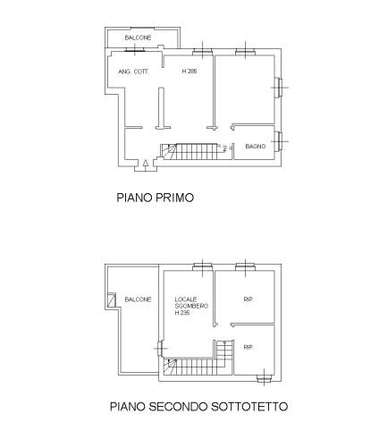 appartamento – con accesso da scala condominiale - composto da ingresso, cucina, corridoio, soggiorno, camera da letto, servizio igienico, balcone coperto al piano primo; disimpegno, locale sgombero, due vani ripostiglio, terrazzo scoperto al piano secondo sottotetto; il piano secondo sottotetto è collegato al piano primo da scala interna.