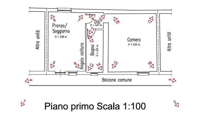 piena proprietà appartamento bilocale oltre servizi in fabbricato di ringhiera posto al primo piano di della superficie commerciale di circa mq 70, termoautonomo