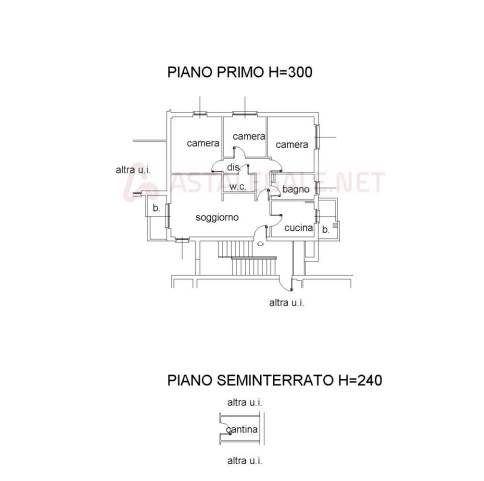 diritto di piena proprieta’ dell'unità abitativa al piano primo della superficie commerciale di mq. 103,40, con pertinenziali cantina e box al piano seminterrato.