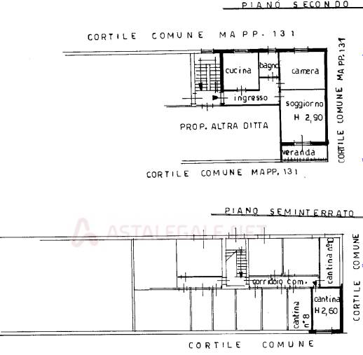 Appartamento della superficie commerciale di mq. 75 per la quota di 1000/1000 di proprietà, posto al secondo piano, senza ascensore e con cortile comune, e si compone di due locali, cucina, bagno e veranda con annessa al primo piano interrato vano cantina.