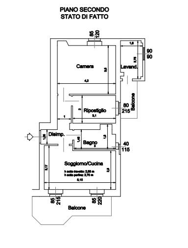appartamento sito al piano secondo e composto da ingresso, soggiorno/cucina, bagno, disimpegno, camera, ripostiglio, lavanderia e due balconi, della superficie commerciale di 70 mq, dotato di riscaldamento autonomo