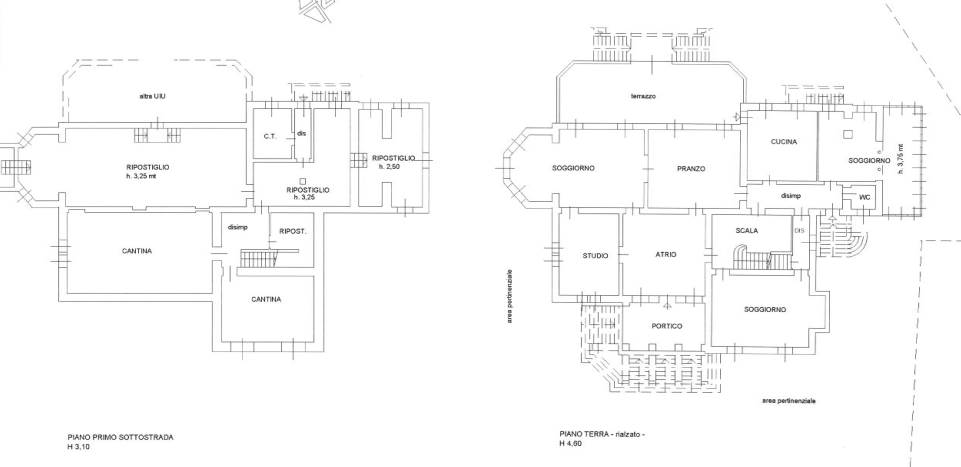 disimpegni, centrale termica, vano scala al piano sottostrada;