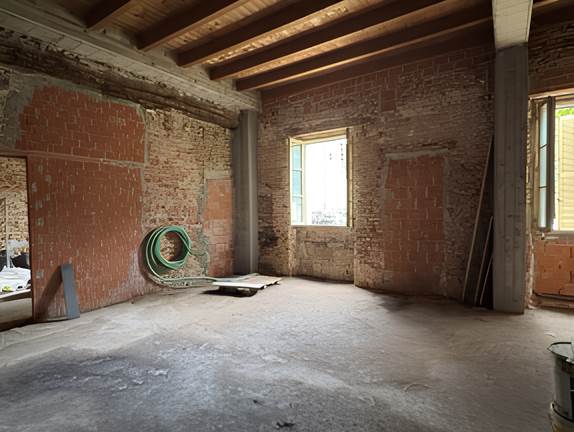 Piena proprietà, appartamento allo stato rustico, posto al piano terra, composto da un locale con cucina e servizi, della superficie commerciale di 84 mq, annesso all'appartamento troviamo un'autorimessa.