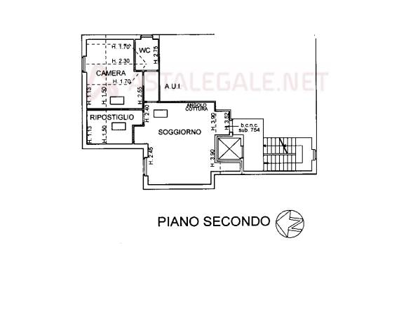 sottotetto composto da due locali con servizi e ripostiglio, della superficie commerciale di 80 mq circa, posto al piano secondo, dotato di ascensore, riscaldamento autonomo