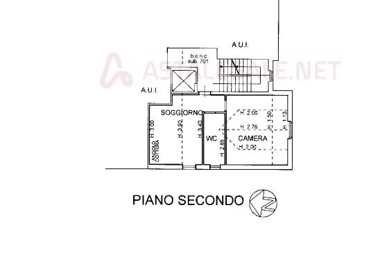 sottotetto posto al piano secondo, composto da due locali e bagno con cantina, della superficie commerciale di 60 mq, dotato di riscaldamento autonomo e ascensore