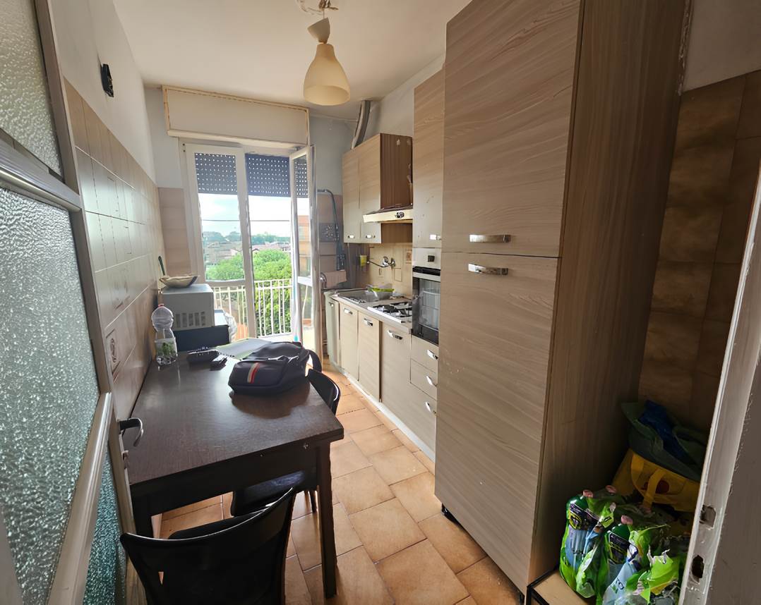 piena proprietà dell’intera abitazione al piano quarto di un edificio condominiale, composta da due locali, cucina, bagno e balcone, oltre a locale ad uso cantina al piano seminterrato, della superficie commerciale di 61 mq