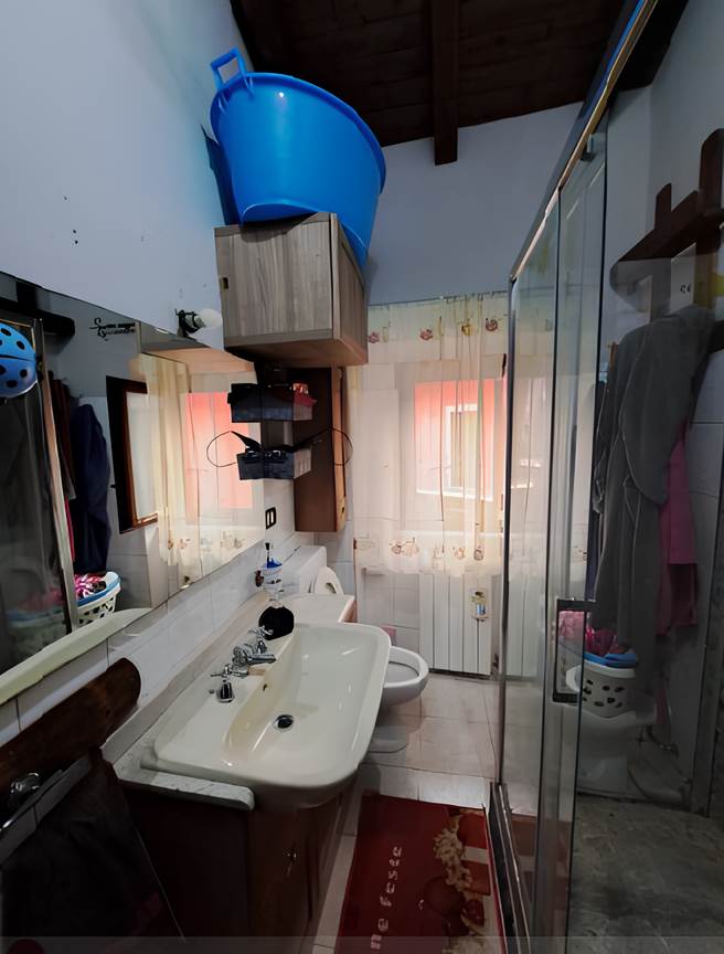immobile residenziale disposto a piano terreno e primo, collegati da scala interna, composto da: al piano terra soggiorno, cucina e piccolo angolo ove si trovano una stufa a pellets ed il boiler per produzione di acqua calda sanitaria e al piano primo da disimpegno, due camere ed un bagno, della superficie commerciale di circa mq.69,20, con locale censito come autorimessa ma ad uso deposito