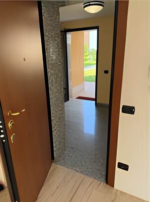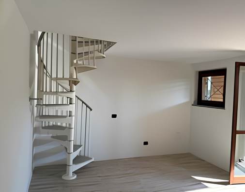 Piena proprietà, appartamento sito in Travacò Siccomario, alla Via Leonardo da Vinci 30, posto al piano terra e primo, composto da un locale con servizio al piano primo e al piano terra da taverna e giardino di pertinenza, collegati fra loro i piani da scala a chiocciola