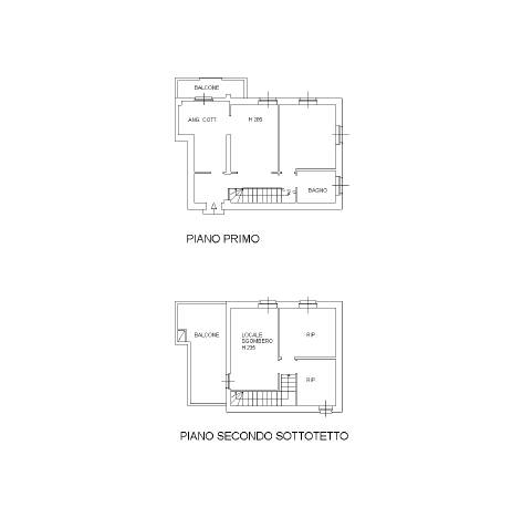 Appartamento – con accesso da scala condominiale - composto da ingresso, cucina, corridoio, soggiorno, camera da letto, servizio igienico, balcone coperto al piano primo; disimpegno, locale sgombero, due vani ripostiglio, terrazzo scoperto al piano secondo sottotetto; il piano secondo sottotetto è collegato al piano primo da scala interna.