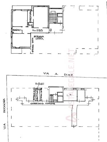 appartamento al piano secondo costituito da corridoio di ingresso e di distribuzione dei locali, soggiorno-pranzo con limitrofo vano cuoci vivande, due camere da letto, servizio igienico, un piccolo ripostiglio e due balconi. annessa cantina di un unico vano nel seminterrato. Della superficie commerciale di 89 mq circa