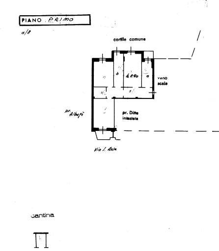 appartamento posto al piano primo e composto da ingresso/disimpegno, cucina, soggiorno, due camere, bagno areato ed illuminato naturalmente, ripostiglio e due balconi. completa la proprietà cantina posta al piano seminterrato