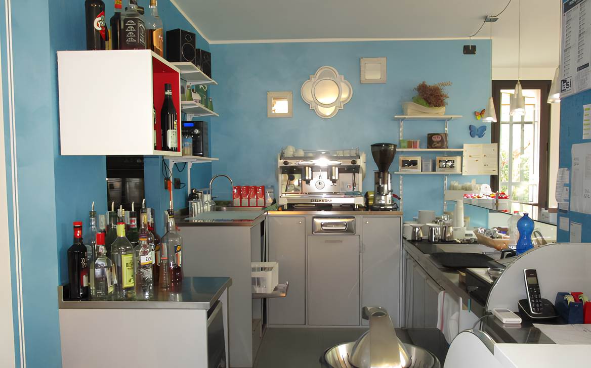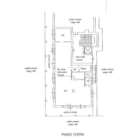 a. bar di mq. 115, piano terra, locale principale oltre retro, vano per preparazione vivande, disimpegni e doppi servizi. b. posto auto scoperto mq. 12. c. posto auto scoperto mq. 13. d. box singolo mq. 15.