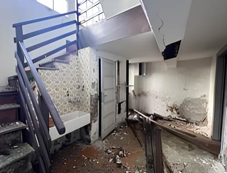 intera e piena proprietà di porzione di fabbricato da cielo a terra, realizzato in aderenza ad altri stabili, disposto su tre livelli della superficie commerciale di 120,38 mq, composto da un locale ingresso, da cui si accede ad un ampio locale oltre ad un piccolo w.c. al piano terra; tramite scala interna in muratura si accede al piano primo ove trovano ubicazione un ampio locale ed un altro w.c.; tramite scala in legno si accede ad un disimpegno/ingresso da cui si accede ad altro locale.