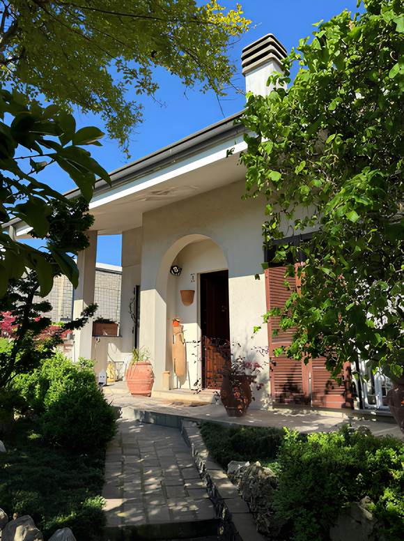 Piena proprietà, porzione di villa bifamiliare della superficie commerciale di mq. 249,60 e box, disposta su tre livelli, piano terra, primo e interrato, composta da cinque locali con tre servizi e accessori. Dotata di riscaldamento autonomo, aria condizionata, impianto fotovoltaico e videocitofono.
