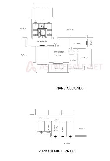 piena proprietà per la quota di 1/1 di appartamento mq. 73, posto al piano secondo, composto da tre locali oltre servizio e disimpegno con annesso vano di cantina posto al piano interrato e vano box al piano interrato