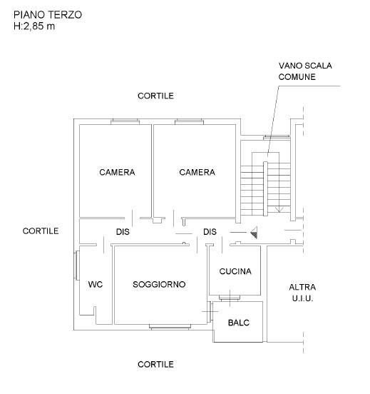 appartamento della superficie commerciale di mq. 88, posto al piano terzo, composto da ingresso, disimpegno, cucina, soggiorno, bagno, due camere, un balcone. cantina al p. seminterrato.