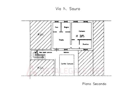appartamento ad uso civile abitazione, a parte di complesso cortilizio, posto al secondo piano e composto da vano soggiorno, cucina, bagno, disimpegno, una camera da letto dimensionata per l'uso di una persona ed un vano
