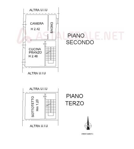 unità immobiliare sita al piano secondo composto da due locali oltre bagno e locale sottotetto al piano terzo, della superficie commerciale di 51 mq, privo di riscaldamento