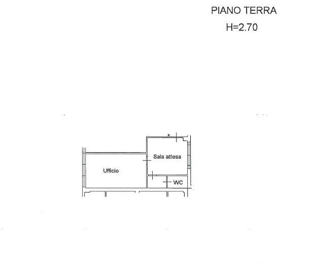 Unità immobiliare composta da: stato rappresentato nella planimetria catastale: sala d’attesa, ufficio, disimpegno e bagno. stato rilevato: sala d’attesa utilizzata come cucina-soggiorno, ufficio utilizzato come camera, bagno