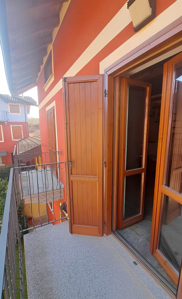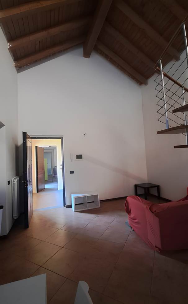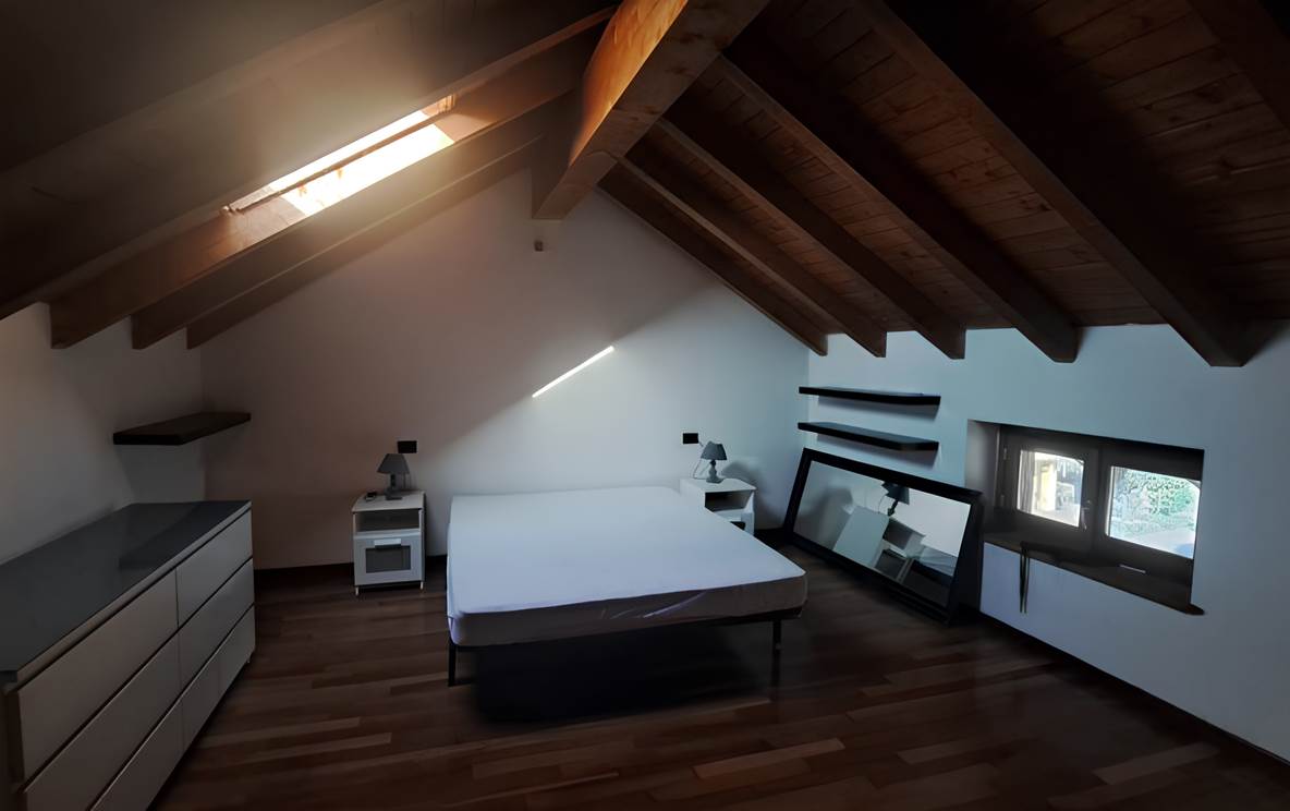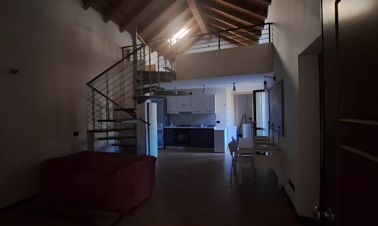 Abitazione di tipo civile [A/2] sita in Taino, via Ponte della Tela 17 Unità residenziale su due piani situata ai piani primo e secondo (sottotetto) composta da monolocale con angolo cottura, bagno e disimpegno al piano inferiore e due ripostigli aperti sul monolocale nel sottotetto. Il collegamento fra i due livelli è assicurato da scala interna aperta. L'alloggio è dotato di due balconi sul lato Est. Posto auto scoperto situato a lato dell’area comune sita in Taino, via Ponte della Tela 17.