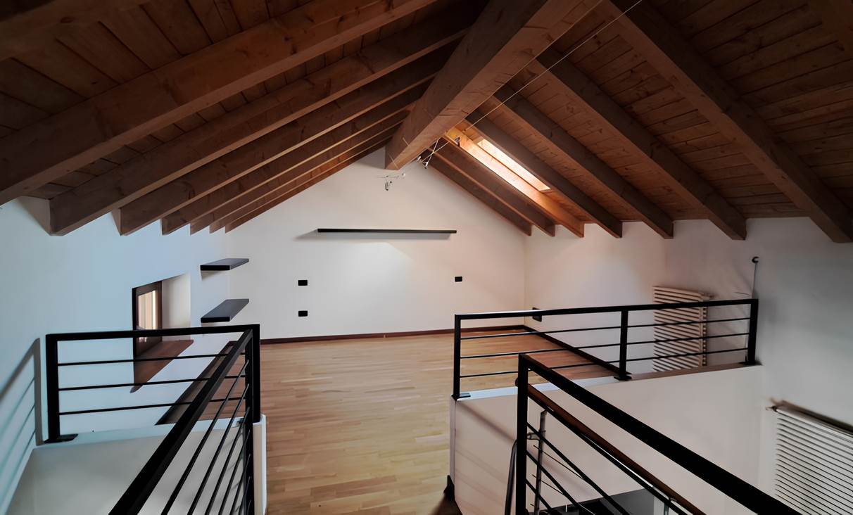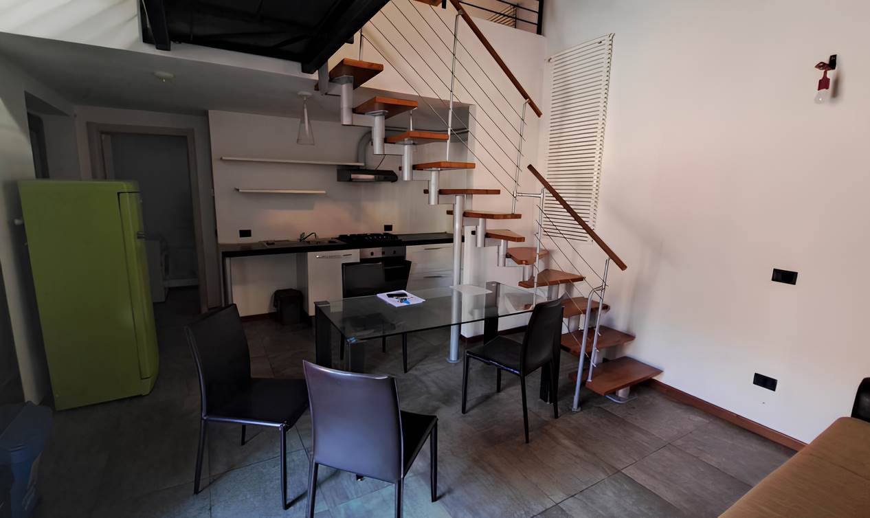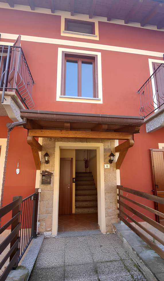 Abitazione di tipo civile [A/2] sita in Taino, via Ponte della Tela 17 Unità residenziale su due piani situata ai piani primo e secondo (sottotetto) composta da monolocale con angolo cottura, bagno e disimpegno al piano inferiore e due ripostigli aperti sul monolocale nel sottotetto. Il collegamento fra i due livelli è assicurato da scala interna aperta. L'alloggio è dotato di due balconi sul lato Est. Posto auto scoperto situato a lato dell’area comune sita in Taino, via Ponte della Tela 17.