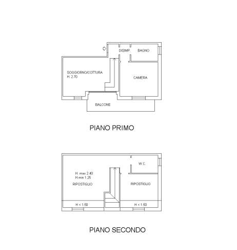 Appartamento al piano primo e secondo costituito di due locali con due bagni e due ripostigli, della superficie commerciale di 92 mq, dotato di autorimessa.