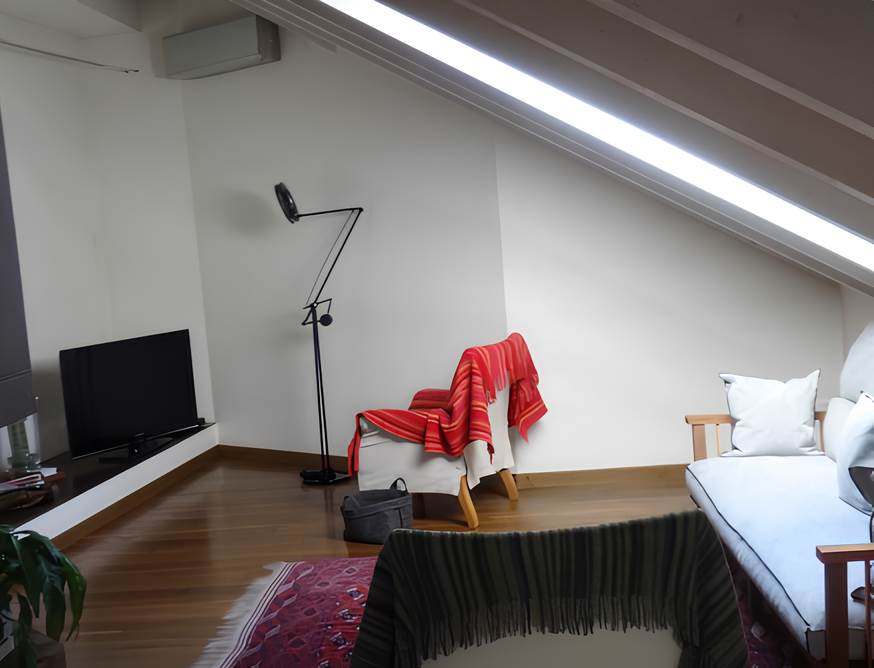 unità abitativa di grandi dimensioni distribuita al piano primo e secondo dell'edificio, con ingresso al piano terra. si compone di 4 locali, un bagno, una lavanderia, un disimpegno al piano secondo, in cui é inserita la zona giorno, e due camere con due bagni collegati, oltre due ripostigli e un corridoio, al piano primo, in cui é inserita la zona notte. sono presenti collegamenti verticali interni che collegano i due livelli. al piano secondo é presente una terrazza, al piano primo due balconi; - un box auto.
