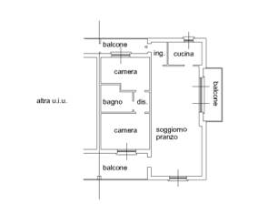 appartamento posto al primo piano composto di tre locali, cucina, servizio igienico, disimpegno, balcone sul cortile e cantina al piano interrato. Della superficie commerciale di 81 mq