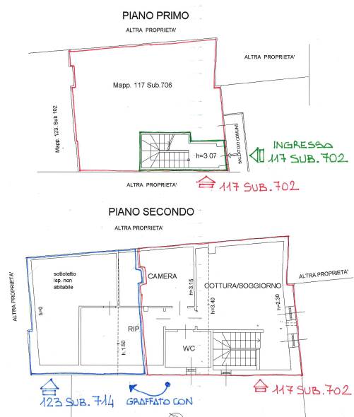 Unità immobiliare nel centro storico di Vaprio d'Adda, a cui si accede da un ballatoio comune, con ingresso al piano primo collegato, per mezzo di scala interna, al piano secondo in sottotetto di due locali (soggiorno con angolo cottura e camera) e servizi (bagno e ripostiglio), oltre sottotetto s.p.p. (senza permanenza di persone) non ispezionabile.