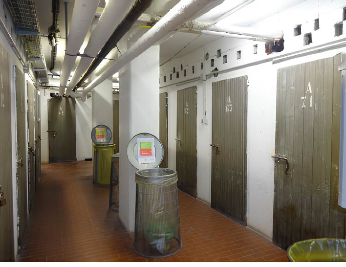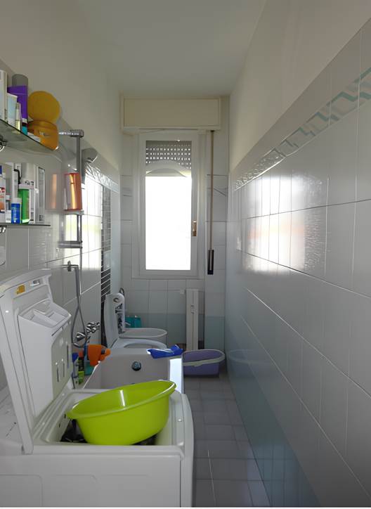 appartamento di mq 77 al piano sesto di tre locali più servizi con vano cantina al piano seminterrato, composto da soggiorno, balcone, camera, disimpegno, cucina, camera matrimoniale, servizio igienico, ripostiglio oltre a vano cantina di pertinenza al piano secondo seminterrato;