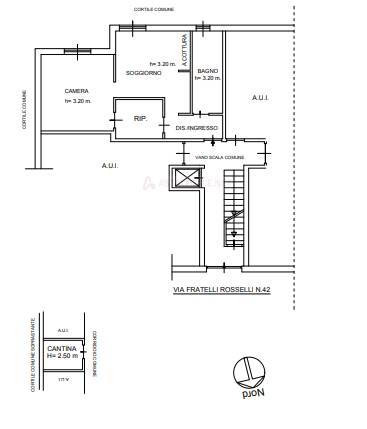 appartamento di mq. 51,00, piano terra, ingresso/disimpegno che collega il soggiorno con angolo cottura, bagno e camera da letto, cantina di pertinenza al piano interrato, posto auto scoperto a cinisello balsamo, via Fratelli Rosselli 42.