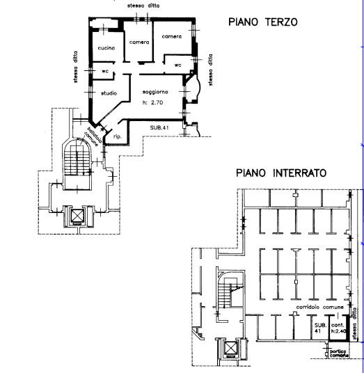 proprietà superficiaria di appartamento al piano terzo sopra il livello strada e s1, composto da soggiorno con doppio balcone, uno studio, una cucina con balcone, due camere da letto, due bagni ed un ripostiglio e cantina di pertinenza nel piano seminterrato.