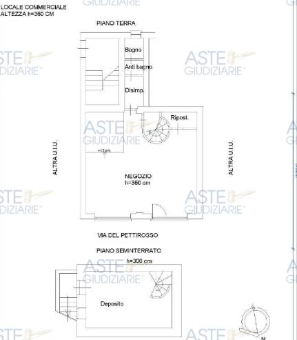 quota pari a 100 / 100 del diritto di intera proprietà di locale ad uso negozio con annesso sottostante magazzino / deposito, sito in roma alla via del pettirosso n. 10, piano t - s1