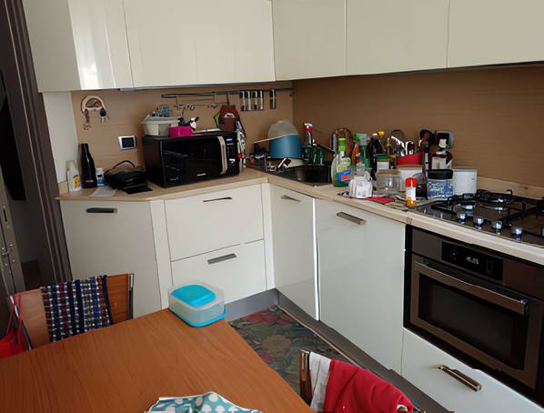 appartamento ad uso abitazione al piano primo con accesso dalla scala 'f', composto da ingresso, soggiorno, cucina, due camere, due bagni, disimpegno e due balconi; box ad uso autorimessa privata pertinenziale all'unità abitativa al piano terra.