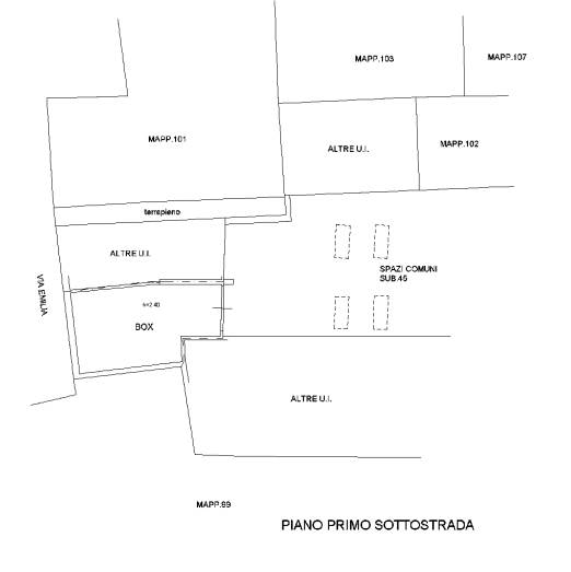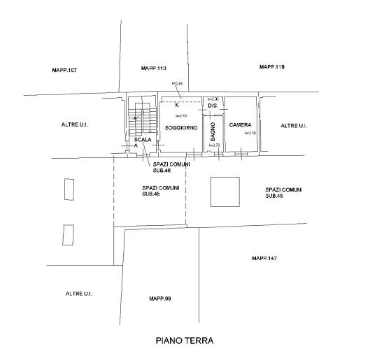 piena proprietà di un appartamento al piano terra, scala a, composto da soggiorno con angolo cottura, disimpegno, camera e bagno, della superficie commerciale di 57 mq, oltre a box autorimessa al piano interrato, della superficie commerciale di 45 mq.