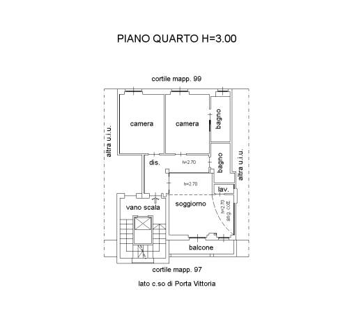 appartamento al piano quarto di fabbricato interno, composto da due locali, due bagni, soggiorno con angolo cottura, lavanderia/ripostiglio, balcone, il tutto di mq. 84 commerciali.