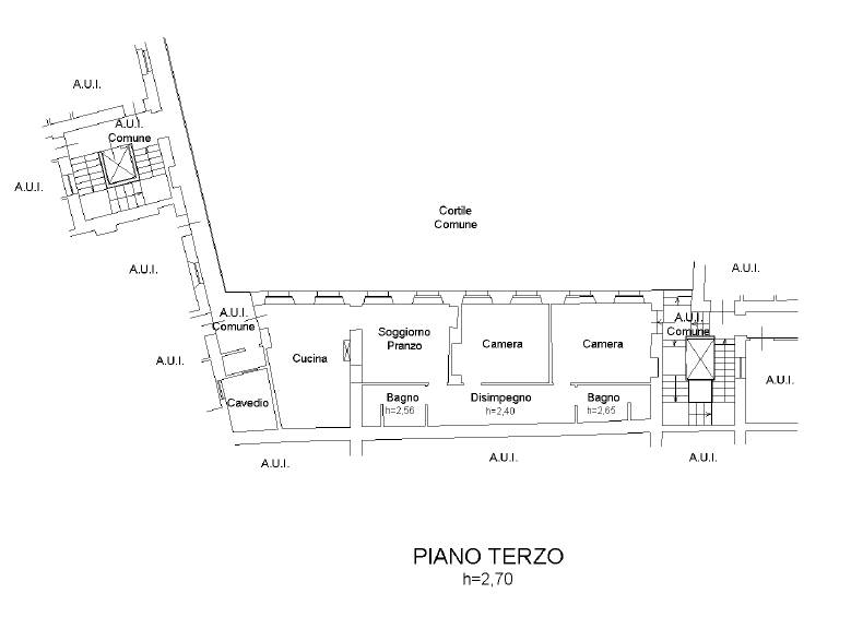 unità immobiliare al terzo piano, composto da tre locali con doppi servizi, della superficie commerciale di 100 mq, dotato di ascensore, portineria e riscaldamento autonomo