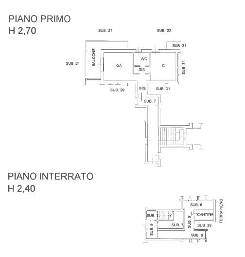 appartamento al primo piano, composto da un locale con cucina, un altro locale, un w.c., un ingresso, un disimpegno e un balcone, con annesso locale cantina pertinenziale sito al piano interrato. Della superficie commerciale di 58 mq