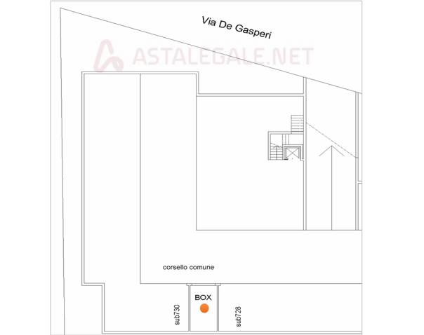 piena proprietà, box auto della superficie commerciale di 15 mq, posto al piano interrato del “condominio de gasperi 7” accessibile da cancello, rampa e corsello coperto condominiali. Dotato di saracinesca manuale e basculante in lamiera