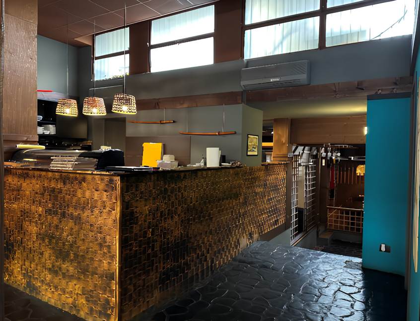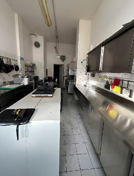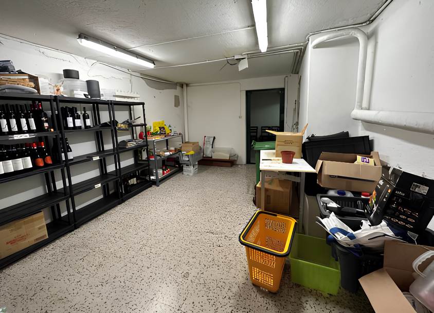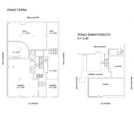 negozio di due ampi locali con cucina e doppi servizi con quattro vetrine su strada, posto al piano terra, con cantina doppia al piano primo interrato, della superficie commerciale di 241 mq, dotato di aria condizionata e riscaldamento centralizzato