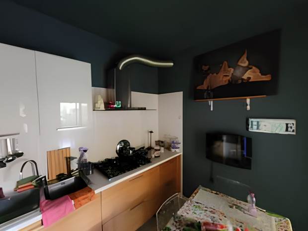 appartamento in fabbricato condominiale, posto al piano secondo composto con ingresso in soggiorno che forma un locale unico con l’ambiente cucina, da entrambi i locali si accede al balcone, attraversando il disimpegno, si raggiunge il bagno e l’unica camera matrimoniale, con annesso vano cantina e autorimessa al piano terra.