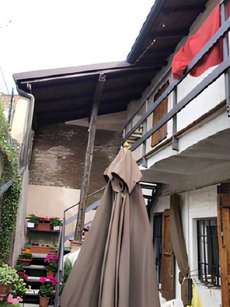 l’unità immobiliare è inserita in un contesto di case a schiera disposte per la maggior parte su due livelli. l’accesso all’unità viene praticato da via circonvallo 40, indi, attraversando un se-dime con diritto di servitù, si accede all’unità in oggetto; la stessa è disposta su due livelli, ed è composta al piano terra da ingresso, cucina/soggiorno, disimpegno, bagno e camera; è presente una scala esterna coperta che permette di accedere al piano primo composto da disimpegno, cucina/soggiorno, camera e bagno.
