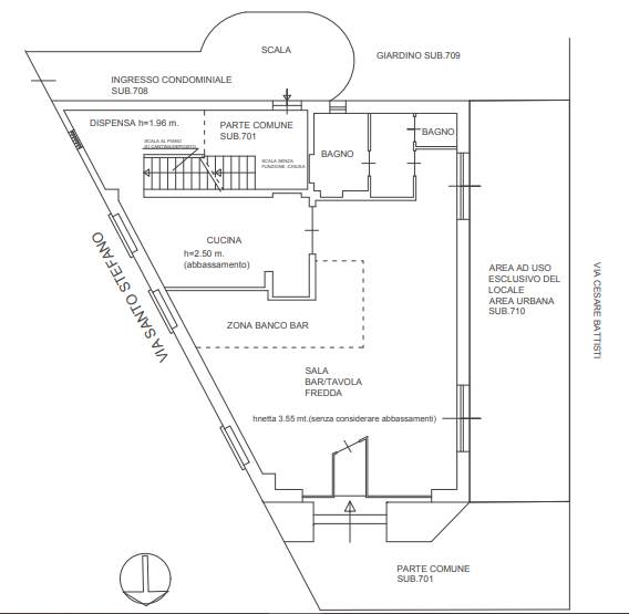 immobile adibito a bar della superficie commerciale di mq. 84,30, posto al piano terra con cantina, 3 vani e altro terreno composto da area esterna funzionale all'attività.