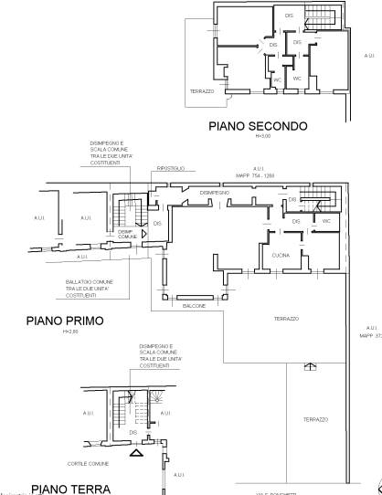 1/1 di a) appartamento della superficie commerciale di 237,83 mq disposto su due piani, primo e secondo, con accesso da ingresso a piano terra e vano scala comuni a due proprietà, composto da: al piano primo (zona giorno) una serie di disimpegni, cucina, sala da pranzo, ampio soggiorno con camino, servizio igienico/lavanderia, un balcone, due ampi terrazzi, il vano scala esclusivo interno che collega il piano primo al piano secondo; al piano secondo (zona notte) disimpegni, tre camere da letto, due servizi igienici e un terrazzo b) per la quota di comproprietà di 1/3 due box ad uso autorimessa posti al piano terra c) per la quota di comproprietà di 38/100 due aree urbane distinte.