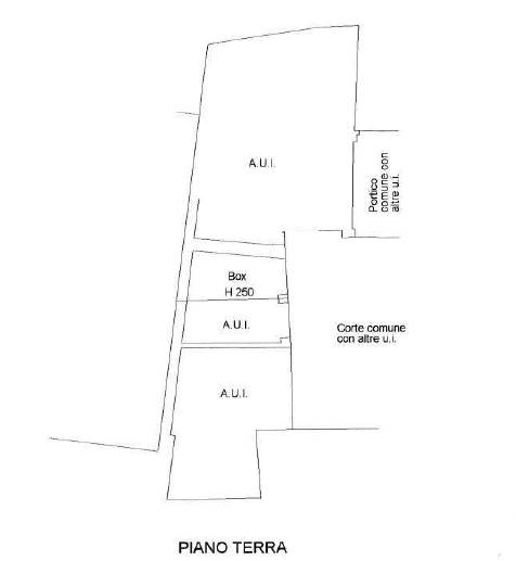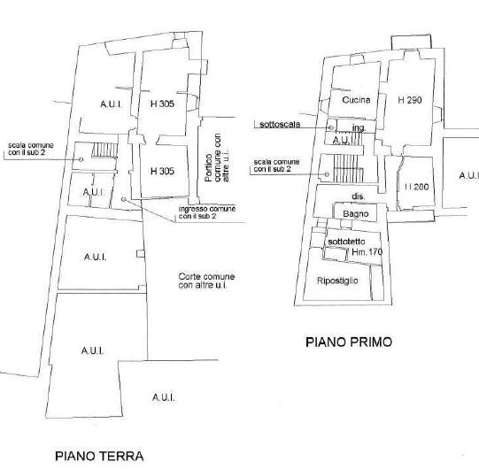 - unità immobiliare a destinazione residenziale composta: a piano terra: da ingresso comune con altri subalterni, disimpegno, bagno, cucinotto, taverna/soggiorno; al piano primo collegato da scala interna da soggiorno, cucina, camera da letto e ripostiglio, autorimessa, giardino privato, tettoia esterna, della superficie commerciale di 198 mq