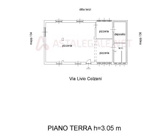 negozio già adibito a pizzeria, 171,45 mq commerciali, p.t: locale centrale, locale preparazione, cella frigorifera, bagno, spogliatoio con bagno, ascensore. sottotetto non abitabile.