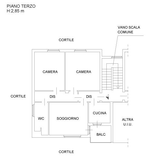 appartamento posto al piano terzo, composto da ingresso, disimpegno, cucina, soggiorno, bagno, due camere, un balcone. cantina al piano seminterrato. Della superficie commerciale di 88 mq, dotato di riscaldamento centralizzato