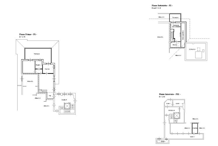 appartamento al piano primo composto da due locali + servizi ed un terrazzo. il piano secondo/sottotetto è attualmente composto da un locale, un bagno, un ripostiglio ed un terrazzo. infine è presente una cantina di proprietà al piano interrato.