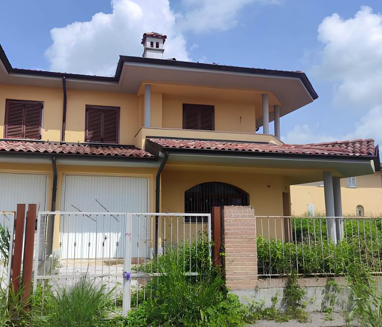 porzione di villa bifamiliare, allo stato rustico, ad uso residenziale, a due piani fuori terra con autorimessa posta a piano terra a lato dell’abitazione e terreno circostante, della superficie commerciale di 150 mq